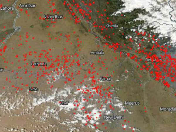 नासा ने बुधवार को अपनी वेबसाइट पर तस्वीर जारी की है जिसमें पंजाब और हरियाणा पर आग के चिन्ह देखे जा सकते हैं। इस मैप के जरिए यह देखा जा सकता है कि किस स्तर पर फसलों में आग लगाई जा रही है। ये तस्वीरें पिछली साल की ही तरह के हैं।
