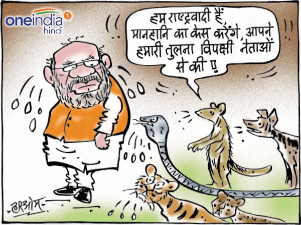 नई दिल्लीः भारतीय जनता पार्टी अध्यक्ष अमित शाह ने सांप, कुत्ते, बिल्ली का एक बयान दिया, जिसके बाद विपक्ष ने उन पर हमला बोला है। डेरेक ओ ब्रायन का कहना है कि जानवरों के उदाहरण वाली ऐसी घिनौनी भाषा का इस्तेमाल किया गया, क्या हम सत्तारूढ़ पार्टी के राष्ट्रीय अध्यक्ष से ऐसी भाषा के इस्तेमाल की उम्मीद कर सकते हैं, काफी कुछ पूछा जाना है। इसी को लेकर है हमारा आज का कार्टून-