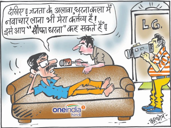 नई दिल्लीः दिल्ली के मुख्यमंत्री अरविंद केजरीवाल पिछले चार दिनों से उपराज्यपाल के दफ्तर के वेटिंग रूम में धरना दे रहे हैं। केजरीवाल के साथ उनकी सरकार की तीन मंत्री भी उनके साथ बैठे हैं। इसी को लेकर है हमारा आज का कार्टून-