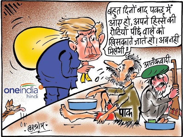 नई दिल्लीः अमेरिका के राष्ट्रपति डोनाल्ड ट्रंप ने पाकिस्तान को दी जा रही 255 मिलियन अमेरिकी डॉलर की मदद रोक दी है। काफी समय से दोनों देशों के श्तों में तल्खी देखी जा रही थी। इसी को लेकर है हमारा आज का कार्टून-