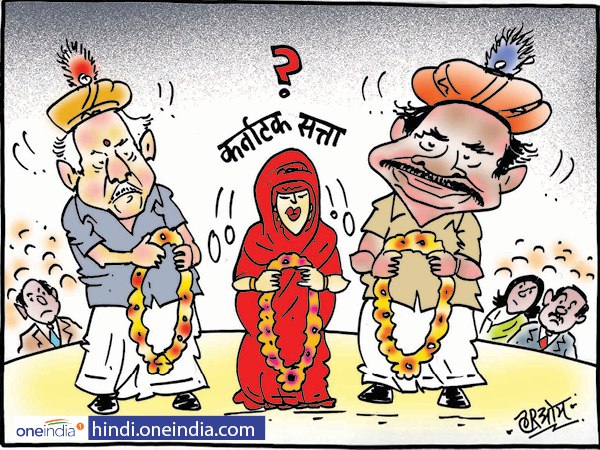 नई दिल्लीः कर्नाटक विधानसभा के नतीजे आ चुके हैं, किसी भी पार्टी को बहुमत नहीं मिला है। सभी पार्टियां कर्नाटक की सत्ता हासिल करने के लिए जोड़-तोड़ की राजनीति कर रही हैं। इसी को लेकर है हमारा आज का कार्टून-