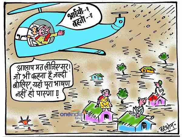 नई दिल्ली। भारी बारिश के चलते देश के कई हिस्से इन दिनों भयंकर बाढ़ की चपेट में हैं। लोग बाढ़ से बेहाल हैं और नेता भाषण का मरहम लगाने में बिजी हैं। देखिए इसी विषय पर आज का हमारा कार्टून।