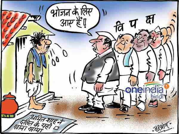 नई दिल्ली। चुनावी मौसम आते ही राजनीति के रंग बदलने लगते हैं। हाशिए पर पड़े लोग अचानक से अहम हो जाते हैं। इसी बदलाव में आजकल दलितों के घर जाकर खाना खाने का ट्रेंड जोरों पर है। देखिए इसी पर आज का हमारा कार्टून।