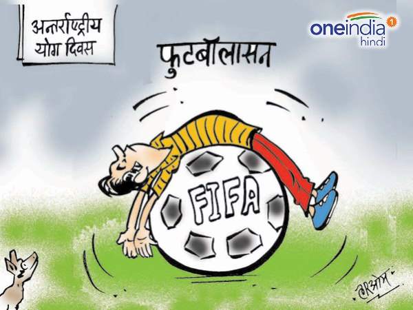 नई दिल्ली। दुनियाभर में आज अंतर्राष्ट्रीय योग दिवस मनाया जा रहा है। प्रधानमंत्री नरेंद्र मोदी उत्तराखंड के देहरादून में योग दिवस कार्यक्रम में हिस्सा ले रहे हैं तो बाबा रामदेव ने राजस्थान में लाखों लोगों को एक साथ योग कराकर विश्व रिकॉर्ड बनाया है। आम आदमी से लेकर सेना के जवानों तक योग कर दुनिया को योग की महिमा का संदेश दे रहे हैं, लेकिन योग दिवस से अलग लोगों पर फुटबॉल का नशा भी चढ़ा हुआ है। देखिए इसी पर आज का हमारा कार्टून।