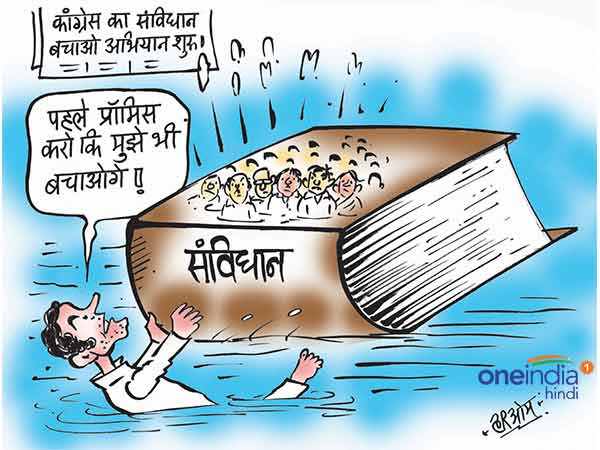 नई दिल्ली। कांग्रेस अध्यक्ष राहुल गांधी ने सोमवार से 'संविधान बचाओ' अभियान की शुरूआत की। अभियान की शुरूआत करते हुए राहुल गांधी ने जमकर प्रधानमंत्री नरेंद्र मोदी पर हमला बोला। हालांकि कांग्रेस की हालिया हालत को देखते हुए राहुल गांधी को अपनी पार्टी को बचाए रखने की ज्यादा जरूरत है। देखिए इसी विषय पर आज का हमारा कार्टून।