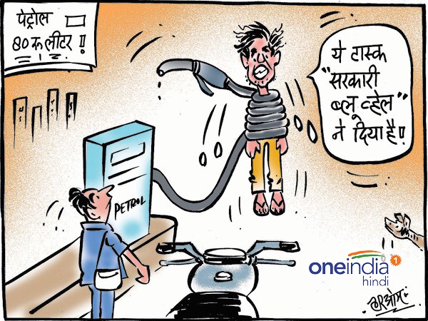नई दिल्लीः हाल के दिनों में ब्लू व्हेल गेम ने खूब सुर्खियां बटोरी। इस गेम को खेलने वाले को टास्क दिए जाते थे, गेम के जीत के लिए इन टास्क को पूरा करना होता था। वहीं पेट्रोल के बढ़ते दामों के कारण सरकार निशाने पर है। इसी को लेकर है हमारा आज का कार्टून-