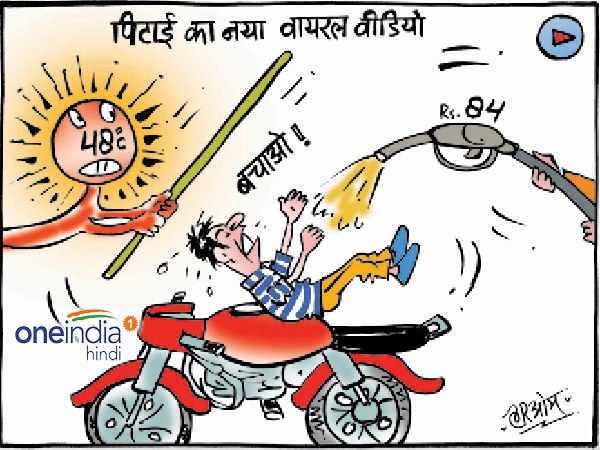 नई दिल्लीः देशभर में लोग गर्मी से परेशान हैं। वहीं, पेट्रोल की कीमतें भी आसमान छू रही हैं। इससे आम आदमी काफी परेशान हैं। एक तरफ सूरज की गर्मी तो दूसरी ओर पेट्रोल की बढ़ती कीमतें, आम आदमी की कमर तोड़ रही हैं। इसी को लेकर है हमारा आज का कार्टून-