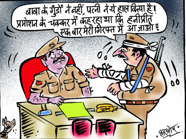 रेप केस में इस वक्त बाबा राम रहीम 20 साल के लिए जेल के अंदर है तो वहीं उसकी करीबी और मुंहबोली बेटी हनीप्रीत सिंह इंशा फरार है, इसी पर आधारित है आज का कार्टून