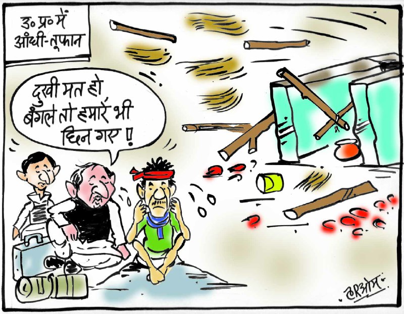 नई दिल्लीः सुप्रीम कोर्ट के आदेश के बाद यूपी के पूर्व मुख्यमंत्रियों ने अपना सरकारी बंगला खाली कर दिया। इससे पहले दिल्ली-एनसीआर समेत यूपी के कई इलाकों में आंधी-तूफान आया था, जिस कारण से लोगों को काफी परेशानी का सामना करना पड़ा था। इसी को लेकर है हमारा आज का कार्टून-