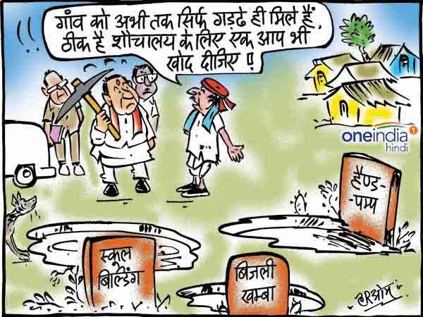 नई दिल्लीः विकास के नाम पर गांवों में कई तरह के गड्ढे खोदे जाते हैं। कई बार बिजली के नाम पर गड्ढे खोदे जाते हैं तो कई बार पेड़ लगाने के नाम पर। लेकिन विकास के नाम पर कुछ खास होता नहीं है। इसी को लेकर हैं हमारा आज का कार्टून-