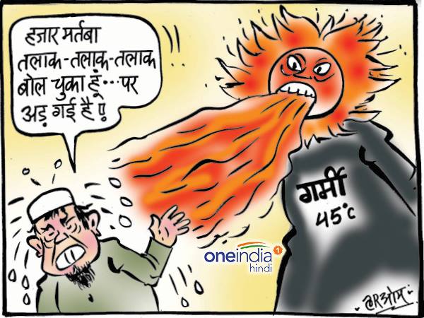तीन तलाक को लेकर पूरे देश में हंगामा मचा हुआ है। लेकिन लोग सूरज की गर्मी को हजार बार तलाक..तलाक बोल चुके हैं, लेकिन वो अड़ी हुई है। इसी पर देखिए यह कार्टून