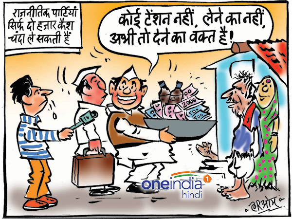 होम / चंदे के बदले नियम से नेताओं को कोई टेंशन नहीं आम बजट में मोदी सरकार ने राजनीतिक चंदे को लेकर नियम बेशक बदल दिए हैं लेकिन नेताओं को फिलहाल कोई चिंता नहीं है। देखिए इस पर हमारा मजेदार कार्टून। Daily Cartoon News oi-Samarth By Samarth Saraswat Updated: Thursday, February 2, 2017, 12:10 [IST] Read more about: budget narendra modi government cartoon fund up assembly election 2017 यूपी विधानसभा चुनाव 2017 Read more about: budget narendra modi government cartoon fund up assembly election 2017 यूपी विधानसभा चुनाव 2017 English summary Narendra Modi government changes rules for political funding in union budget 2017