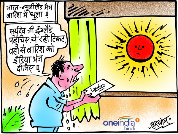 नई दिल्ली। भारत में जहां गर्मी से हाहाकार मचा है दूसरी ओर, इंग्लैंड में हो रहे क्रिकेट विश्व कप में भारत-न्यूजीलैंड के बीच होने वाले मैच को भारी बारिश के कारण रद्द करना पड़ा। इस विश्व कप में ये चौथा मैच था जो बारिश के कारण रद्द किया गया। भारतीय क्रिकेट टीम का अगला मैच पाकिस्तान के साथ रविवार, 16 जून को खेला जाएगा। इसी मुद्दे पर देखें कार्टून