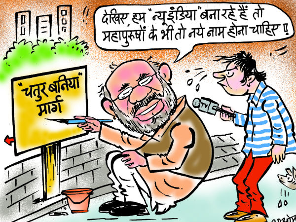 हाल ही में बीजेपी अध्यक्ष अमित शाह ने रायपुर में एक सभा को संबोधित करते हुए महात्मा गांधी को एक चतुर बनिया कहा था, इसी पर आधारित है आज का कार्टून...