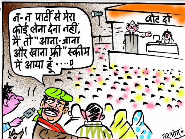 होम / 'पार्टी से मेरा कोई लेना-देना नहीं, मैं तो खाना फ्री-स्कीम में आया हूं' हाल ही में खबर आई थी कि कुछ राजनैतिक पार्टियों ने अपनी रैली में लोगों को खाने-पीने का लालच देकर बुलाया था, उसी पर आधारित है आज का कार्टून... Daily Cartoon News oi-Ankur Sharma By Ankur Sharma Updated: Sunday, February 5, 2017, 17:31 [IST] Read more about: up assembly election 2017 varanasi cartoon satire agra bjp congress sp bsp यूपी विधानसभा चुनाव 2017 Read more about: up assembly election 2017 varanasi cartoon satire agra bjp congress sp bsp यूपी विधानसभा चुनाव 2017 English summary Political Parties use satire based cartoon to counter each other in Social Media for UP Assembly Election 2017.