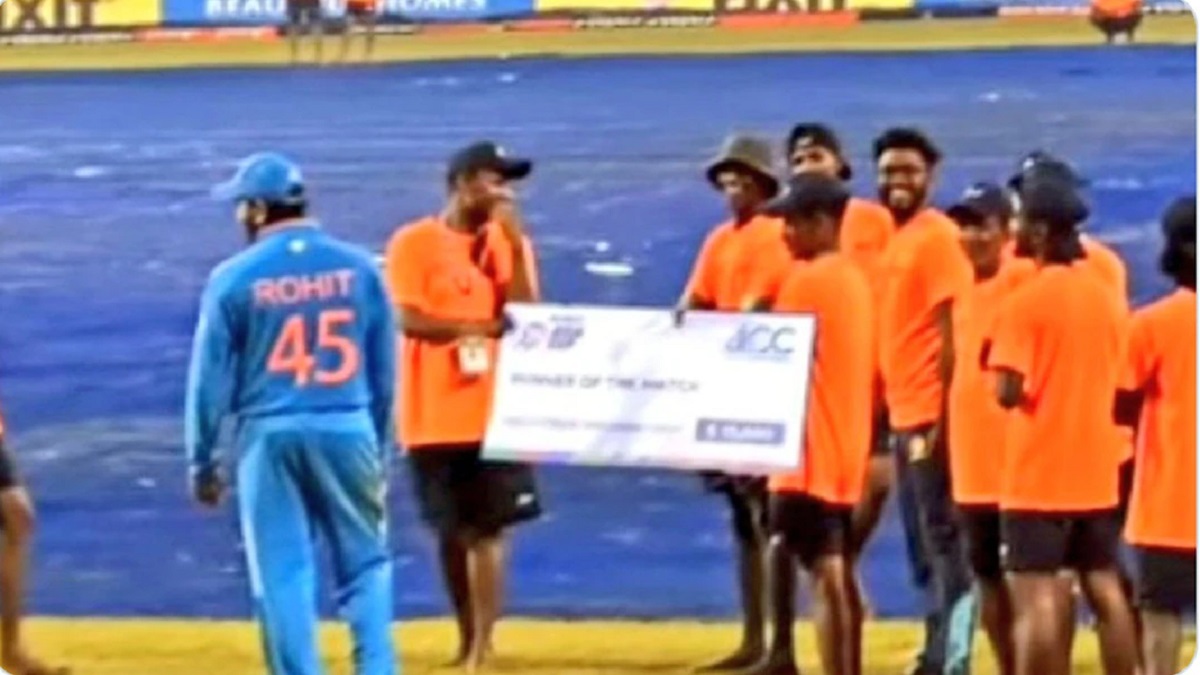 एक तस्वीर को लेकर दावा किया जा रहा है कि भारतीय कप्तान रोहित शर्मा ने मैन ऑफ द मैच में मिले चेक को ग्राउंड स्टाफ को सौंपी दी।