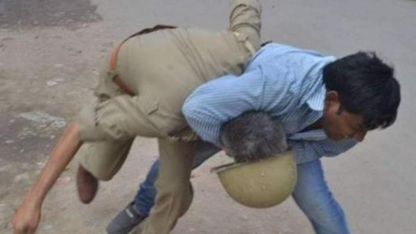 नई दिल्ली। सोशल मीडिया पर एक वायरल हो रही है। जिसमें बीच रास्ते एक युवक एक पुलिसवाले को गले से पकड़कर पीट रहा है। इसमें दोनों के ही चेहरे नहीं दिख रहे हैं लेकिन तस्वीर को ये कहकर शेयर किया जा रहा है कि ये पश्चिम बंगाल की है। तस्वीर में जो युवक मारपीट कर रहा है, उसे भाजपा का कार्यकर्ता बताया जा रहा है। हालांकि फैक्ट चैक करने पर ये दावा गलत निकला है। ये तस्वीर पश्चिम बंगाल की नहीं उत्तर प्रदेश की है और वो भी करीब 3 साल पुरानी घटना की है।