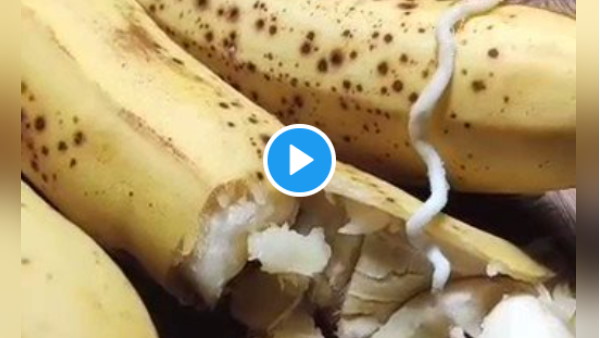 वीडियो में देखा जा सकता है कि एक शख्स टेबल पर रखे केले को काट कर दिखाया है। इस बीच वह एक सफेद रस्सी नुमा कोई चीज बाहर निकालता है जिसे हेलिकोबैक्टर नाम का कीड़ा बताया जा रहा है। इतना ही नहीं एक केले के अंदर से वो दो ऐसी अजीब चीजें बाहर निकालता है। हालांकि जिसे कीड़ा बताया जा रहा है उसमें कोई हरकत नहीं हो रही है, लेकिन यह देखने में काफी घिनौना है।