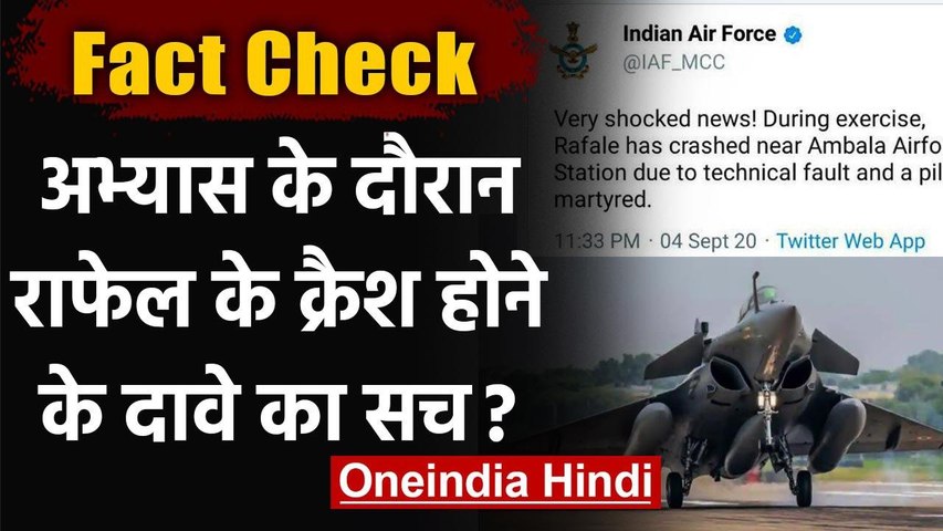 सोशल मीडिया पर साझा हो रही पोस्ट्स में कहा गया था कि आईएएफ में शामिल नए फाइटर जेट राफेल में कुछ तकनीकी समस्या आ गई थी। इस वजह वह अंबाला के करीब क्रैश हो गया और इसमें पायलट भी शहीद हो गए। ये जानकारी आईएएफ के उस हैंडल की तरफ से साझा की जा रही थी जो फेक था। पीआईबी की तरफ से कहा गया है, 'आईएएफ ने इस तरह की कोई भी ट्वीट जिसमें राफेल क्रैश की बात है, पोस्ट नहीं की है और यह खबर झूठी है।' पीआईबी फैक्ट चेक के जरिए बताया गया है कि जो तस्वीरें साझा की जा रही हैं वह भी गलत हैं।
