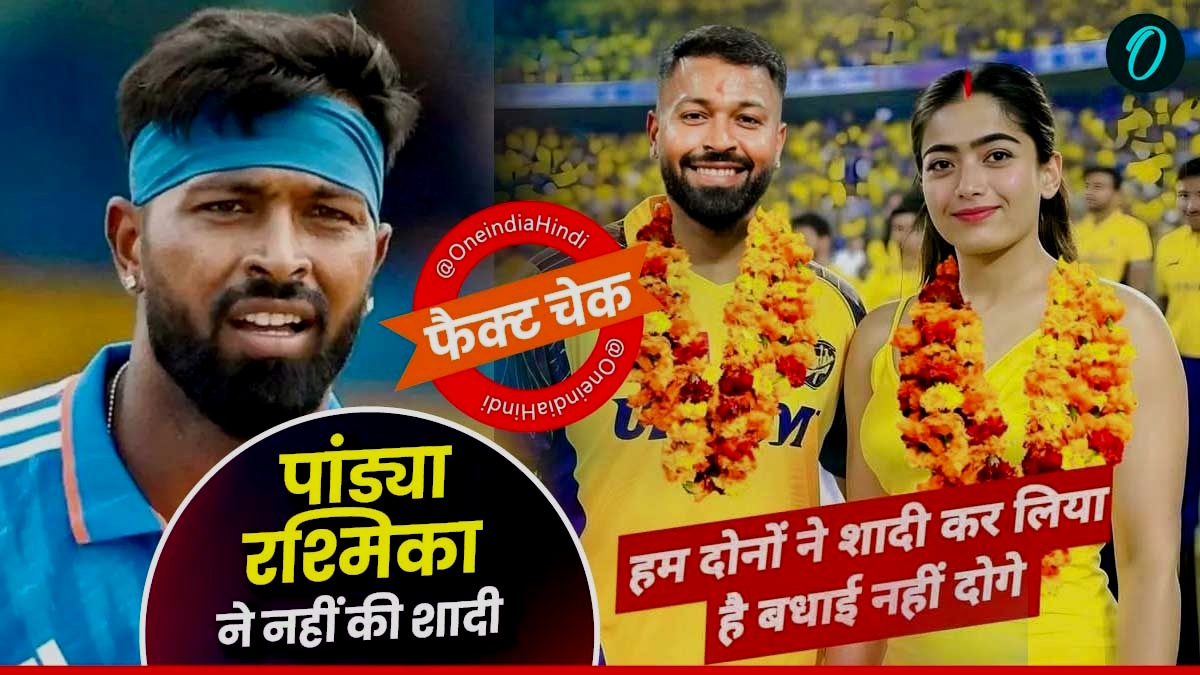 Fact Check Hardik Ppandya Rashmika Mandanna Marriage: फिल्म अभिनेत्री नताशा स्टेनकोविक से तलाक के बाद भारतीय ऑलराउंडर क्रिकेटर हार्दिक पांड्या व 'नेशनल क्रश' पुष्पा फेम रश्मिका मंदाना की एक तस्वीर सोशल मीडिया पर वायरल हो रही है, जिसमें उनकी शादी हो जाने का दावा किया जा रहा है। शादी के नाम पर उनको बधाई देने के साथ-साथ दोनों की कई तस्वीरें भी वायरल हो रही हैं। तस्वीरें वनइंडिया हिंदी के फैक्ट चेक में फर्जी निकली हैं।