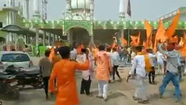 नई दिल्ली, 15 अप्रैल: सोशल मीडिया पर एक वीडियो वायरल हो रहा है। जिसमें कुछ लोगों का एक समूह भगवा झंडे लिए दरगाह की ओर बढ़ रहा है। ये वीडियो करौली और जेएनयू परिसर में हालिया हिंसा के संदर्भ में वायरल किया जा रहा है। वायरल वीडियो में भगवा कपड़े पहने हुए कुछ लोग एक मस्जिद की ओर चलते हुए दिख रहे हैं।वही वो लोग लाउडस्पीकर पर 'जय श्री राम' के नारे लगा रहे हैं और संगीत बजा रहे हैं।