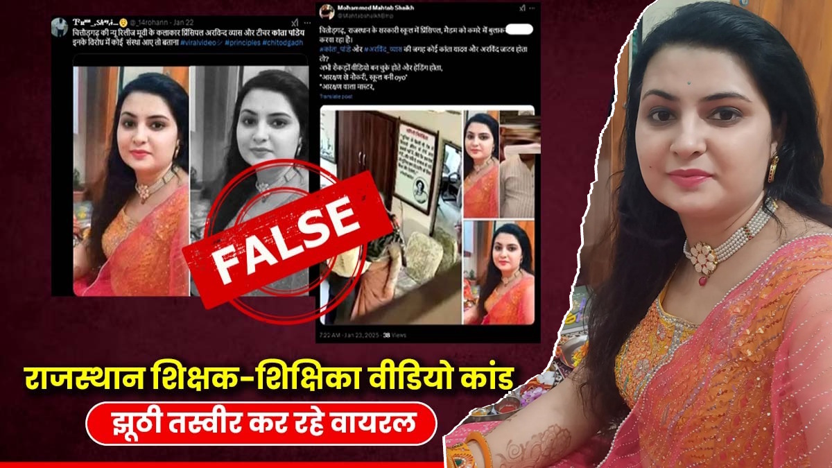 राजस्थान में चित्तौड़गढ़ के सरकारी स्कूल से लेडी टीचर व प्रिंसिपल का वीडियो वायरल होने के बाद सोशल मीडिया पर इसे लेडी टीचर की तस्वीर बताकर उसके साथ एक शख्स की फोटो भी वायरल करवा रहे हैं। लोग इन्हें ट्रोल कर रहे हैं।