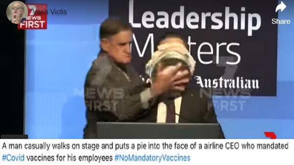 रिपोर्ट के मुताबिक, CNN ने 9 मई 2017 को इस वीडियो को शेयर करते हुए लिखा था, "देखिए इस एयरलाइन के सीईओ पर उसी के एक कर्मचारी ने कार्यक्रम में भाषण देते समय चेहरे पर क्रीम पाई को रगड़ दिया।" सीएनएन की रिपोर्ट के मुताबिक, वीडियो में जिस शख्स पर हमला हो रहा है, वह ऑस्ट्रेलियाई कैरियर क्वांटास के सीईओ एलन जॉयस हैं। पर्थ में वेस्ट ऑस्ट्रेलियन अखबार द्वारा आयोजित एक नेताओं के शिखर सम्मेलन में बोलते हुए, 67 वर्षीय टोनी ओवरहे द्वारा उन पर ये हमला हुआ था।