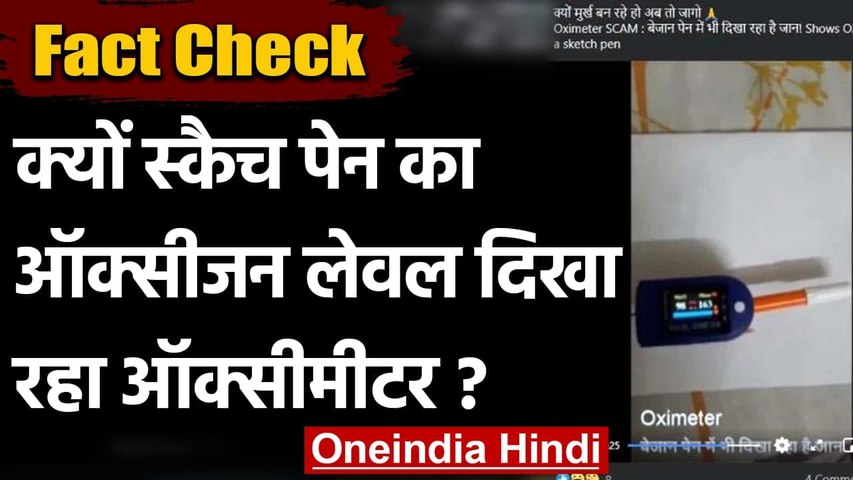 नई दिल्ली, मई 15: कोरोना की दूसरी लहर के बीच, पल्स ऑक्सीमीटर भारत में एक घरेलू गैजेट बन गया है। कोरोना संक्रमित शख्स की मॉनीटरिंग के लिए ऑक्सीमीटर सबसे अहम उपकरण है। जो मरीज की स्थिति की त्वरित जानकारी देता है। इसी बीच सोशल मीडिया पर एक स्केच पेन के ऑक्सीजन लेवेल को दिखने वाले एक वीडियो वायरल हो रहा है। जिसे लोग ऑक्सीमीटर स्कैम करार दे रहे हैं। दावा किया जा रहा है कि लोगों को बेवकूफ बनाने के लिए इसको यूज़ किया जा रहा है।