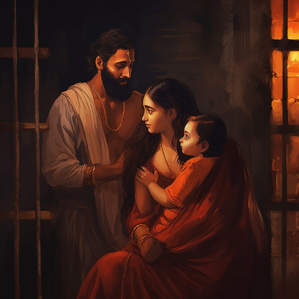 कृष्ण का जन्म मथुरा में महाराज वसुदेव और रानी देवकी से तब हुआ था, जब उनके माता -पिता एक भविष्यवाणी के कारण कंस के कैद में थे। भविष्यवाणी यह थी कि देवकी और वसुदेव का आठवाँ पुत्र कंस का वध करेगा।