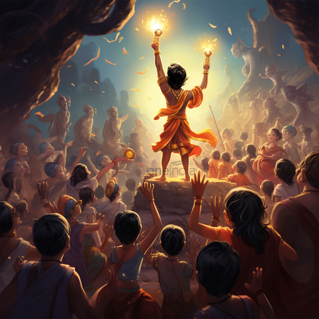 कृष्ण ने दानव नरकासुर को हराया, जिसने दुनिया को आतंकित किया था। भारत के कई क्षेत्रों में इस घटना की याद में दीपावली मनाई जाती है।