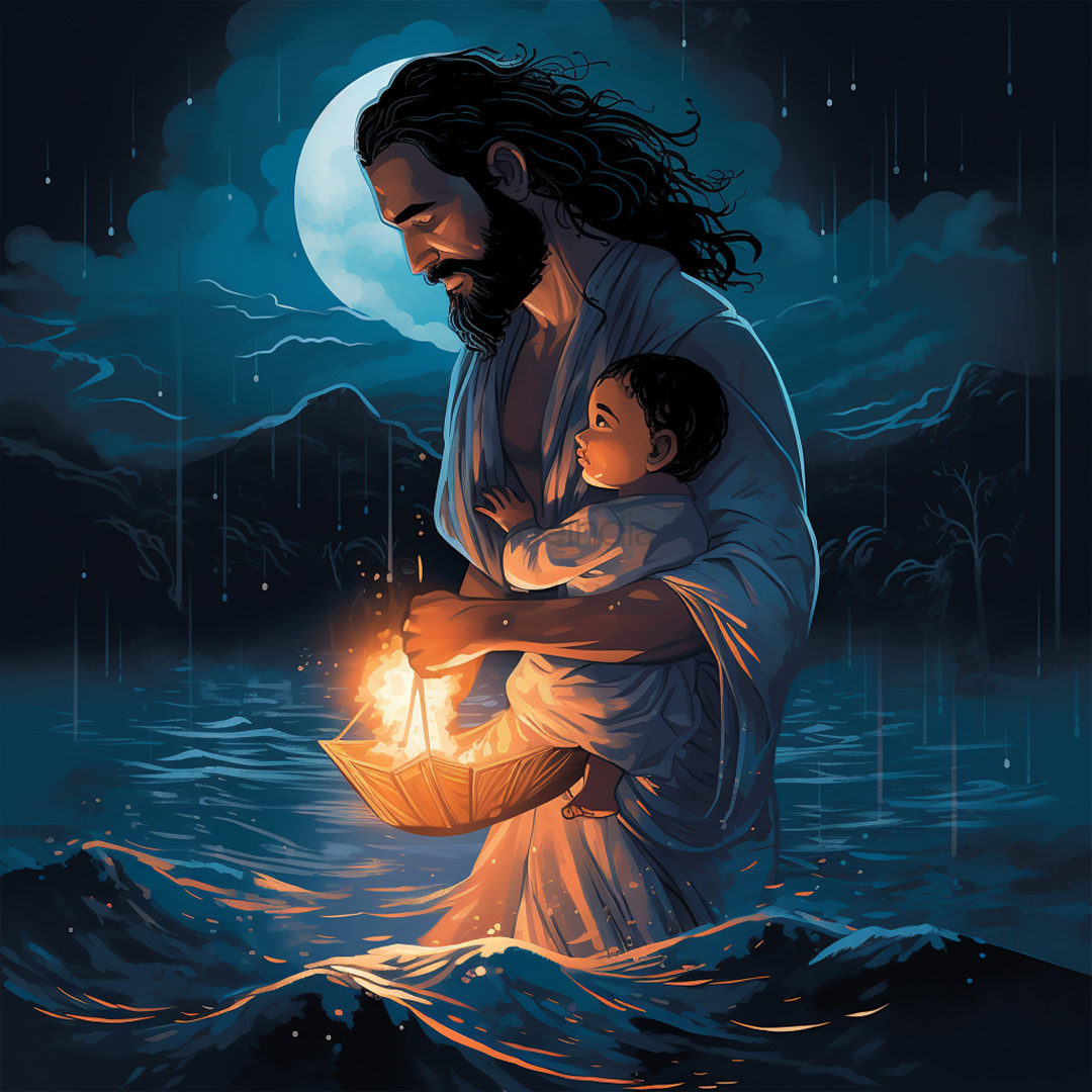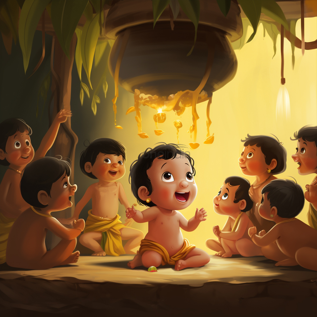 वासुदेव भादों की अंधेरी रात में शिशु कृष्ण को यमुना पार गोकुल ले गए, जहां उनका पालन-पोषण नंद और याशोदा के द्वारा हुआ।