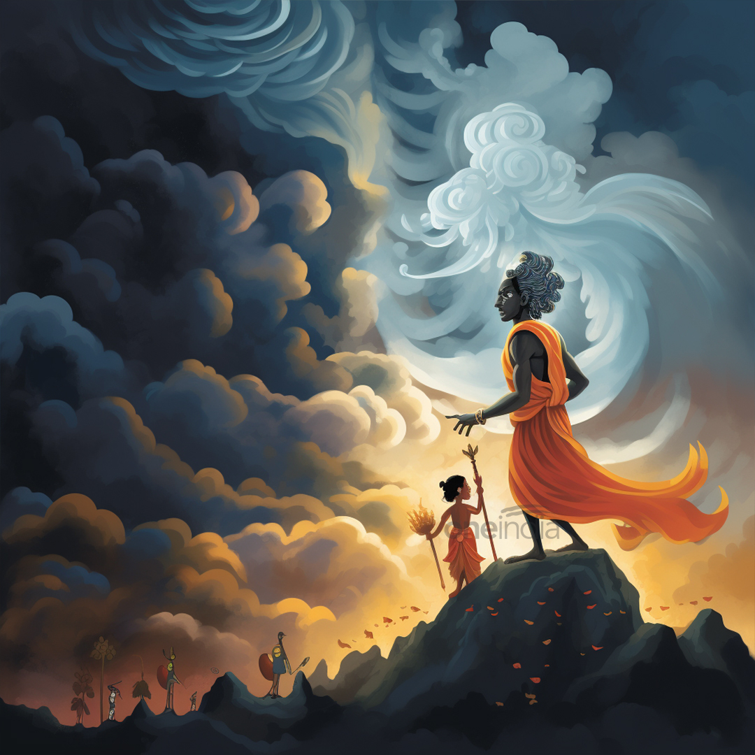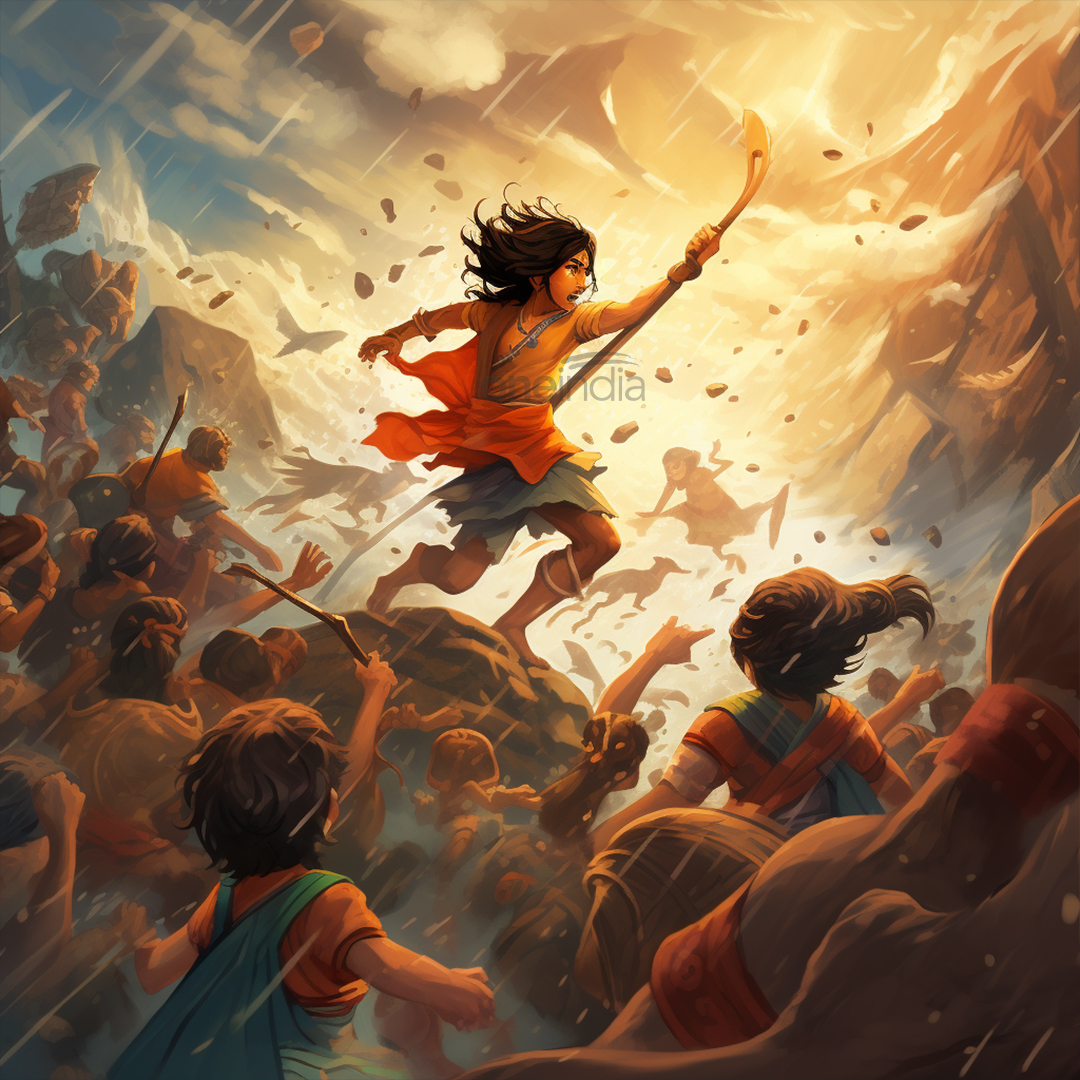 कृष्ण ने गोवार्धन पहाड़ को अपनी उंगलियों पर उठा लिया ताकि गोकुल के ग्रामीणों को भगवान इंद्र के वर्षारूपी क्रोध से बचाया जा सके।