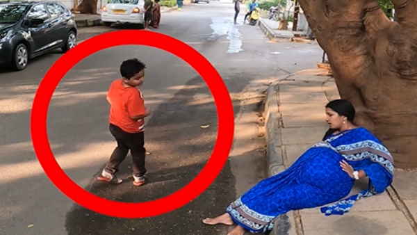 वीडियो की शुरूआत में आप देख सकते हैं कि नीले रंग की साड़ी पहने गर्भवती महिला को अचानक पेट में तेज दर्द होने लगता है। उसको देखकर लग रहा है कि वो नंगे पैर घर से बाहर वॉक करने के लिए निकली रही होगी। तेज दर्द के कारण वो फुटपाथ पर किनारे किसी तरह आकर पेड़ का सहारा लेकर बैठ जाती है।