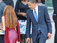 इतालवी शहर में आयोजित जी-8 देशों के सम्मेलन में भाग लेने पहुंचे ओबामा की नज़र जब एक ब्राजीलियन बाला पर पड़ी तो वह अपनी नज़रे उनसे हटा नहीं पाए। ग्रुप फोटो खींचने के लिए खड़े फोटॉग्रफर्स के लिए इससे बेहतर पोज़ क्या हो सकता था।