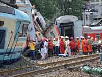 अधिकारियों ने बताया कि यह हादसा स्थानीय समयानुसार गुरुवार रात लगभग 10.30 बजे हुआ। हादसे के बाद इस रेलमार्ग पर सेवाएं रोक दी गईं हैं।