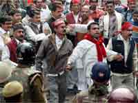 सपाइयों पर लाठीचार्ज, मुलायम गिरफ्तार