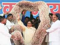 बसपा कार्यकर्ताओं ने बुधवार को एक बार फिर मायावती को नोटों की माला पहनाई। देखते ही देखते इस मामले ने तूल पकड़ लिया। यूपी के मुख्य विपक्षी दल समाजवादी पार्टी ने इस मामले की जांच की मांग उठाई है। पार्टी प्रवक्ता मोहन सिंह ने कहा कि इस तरह से करोड़ों रुपए के नोटों की मालाएं पहनना गरीबों के साथ मजाक है।