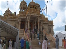 लंदन के मशहूर वेम्बले स्टेडियम के पास एक और भव्य मंदिर बनाया गया है जिसमें सिर्फ़ पत्थरों का ही इस्तेमाल हुआ है.