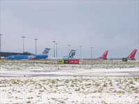 उड्डयन अधिकारियों ने यात्रियों को सलाह दी है कि अपनी उड़ानों के बारे में वेबसाइट पर जानकारी हासिल करने के बाद ही घर से निकलें। राष्ट्रीय मौसम सेवा ने इलाके में तीन से पांच इंच तक बर्फबारी होने की भविष्यवाणी की है।
