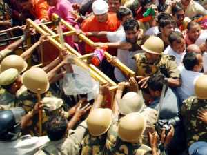 अधिकारियों ने घटना की सूचना पुलिस को दी जब तक पुलिस मौके पर पहुंचती ग्रामीणों ने कार्यालय को तहस नहस कर दिया। स्थिति को काबू में करने गये पुलिस दल पर किसानों ने पथराव किया और हवा में गोलियां चलाई। इस दौरान हुए पथराव में सात पुलिसकर्मी घायल हो गए। ग्रामीणों के गुस्से को देखते हुए क्षेत्र में भारी पुलिस बल तैनात किया गया। उधर अलीगढ जिले के टप्पल एवं घगोड़ी गांव में भी ग्रामीणों सडक पर जाम लगाकर जेपी ग्रुप के लिए काम करने वाले रहे मजदूरों की झोपडियों में आग लगायी और उन्हें कार्य स्थल से खदेड़ दिया।