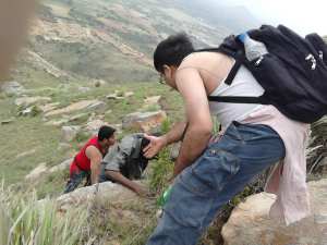इसी बीच शंकर जो शरीर में काफी दुबला था, उसने आगे बढकर एक रास्ता ढूढा जो कि काफी खतरनाक था। सीधी चट्टान पर अपने पैरों से ग्रीप बना कर हमें आगे बढना था। मतलब जरा सा भी चूक होती तो हमारें बाएं तरफ लगभग 5,000 फिट खाई थी जो कि शायद हमें जिंदा निगल जाती। हम सभी शंकर के पीछे-पीछे चलने लगें इस दौरान मुझे सबसे ज्यादा डर लग रहा था, क्योकि मेरा वजन काफी ज्यादा था और मेरे पीठ पर बैग भी था। मैं जैसे ही आगे बढा तो मुझे लगा कि मेरा पैर फिसल जायेगा।