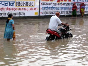 भारी बारिश से दिल्ली व एनसीआर में पानी भरा, ट्रैफिक जाम