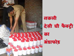 कोठी में चलाई जा रही नकली देसी घी फैक्ट्री का भंडाफोड़