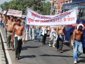 बर्खास्त जवानों ने अर्धनग्न होकर प्रदर्शन किया
