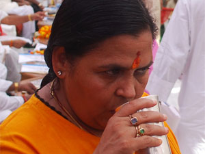 उमा भारती के धरने पर बैठते ही वहां बीजेपी कार्यकर्ताओं की भीड़ जमा हो गई और सरकार विरोधी नारे लगाने लगी। धरने पर बैठने के पीछे कारण यह था कि राष्ट्रीय स्वयं सेवक संघ से जुडे लोगों की गिरफ्तारी के बाद उमा थाने गईं थी। थाने पर किसी बात को लेकर उनकी बहस हो गई थी और थाना इंजार्च ने उनके उपर रायफल तान दिया था। इसके बाद से वह धरने पर बैठ गईं थी।
