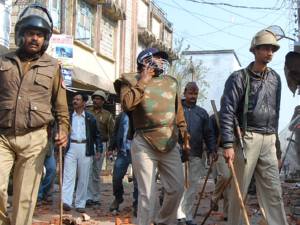 पुलिस मौके पर पहुंची और दोनों पक्षों को शांत कराने का प्रयास किया लेकिन ग्रामीणों ने बलरई के थाना प्रभारी जयश्याम शुक्ला तथा उनके साथ सिपाहियों की पिटाई कर दी। एसओ को बचाने जब पीएसी के जवान दौड़े तो उग्र भीड़ ने उन पर पथराव कर दिया।