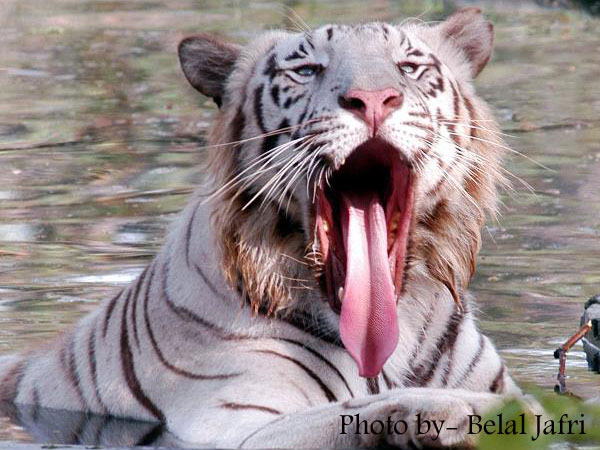 मेरा शहर मेरे लोग- लखनऊ के चिड़ियाघर में सफेद बाघ हमेशा से आकर्षण का केंद्र बना रहता है। गर्मी के दिन उसके बाड़े में पानी की विशेष व्यवस्था की गई, जिसमें गोते लगाकर बाघ गर्मी से राहत पाने की कोशिश करता है। हाल ही में बाघ पानी में अठखेलियां दिखाते वक्त चिड़ियाघर में आये लोगों के लिए वो विशेष आकर्षण बना। तभी वनइंडिया के बिलाल जाफरी ने बाघ की यह तस्वीर क्लिक की।