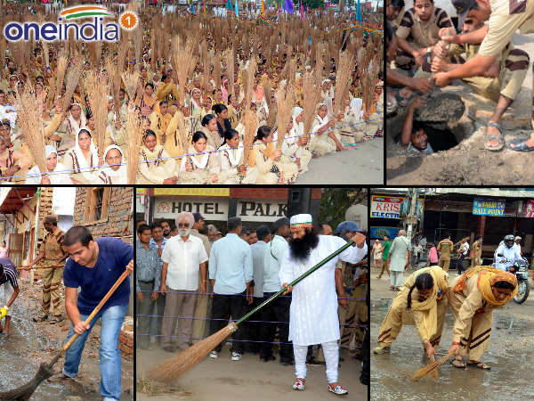 हिसार के रेड स्केवयर मार्केट मैदान में प्रात: करीब साढे आठ बजे संत गुरमीत राम रहीम सिंह इन्सां पहुंचे जहां हजारों की संख्या में उपस्थित डेरा श्रद्धालुओं ने उनका 'धन धन सतगुरू तेरा ही आसरा' का नारा लगाकर स्वागत किया। डेरा प्रमुख ने 'हो पृथ्वी साफ, मिटे रोग अभिशाप' स्लोगन गुब्बारे आसमान में छोड़ तथा बाद में उन्होंने अपनी माता नसीबकौर इन्सां के साथ अपने पावन कर कमलों से झाडू लगाकर सफाई महा अभियान का आगाज किया।