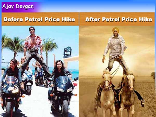 फेसबुक पर इस समय एक फोटो सबसे ज्यादा शेयर की जा रही है, इस फोटो में अभिनेता अजय देवगन की फिल्म गोलमाल का वो सीन है जिसमें वो दो मोटर साईकिलों पर पैर फैलाकर खड़े हैं। उसके बगल में अजय देवगन की आने वाली फिल्म सन ऑफ सरदार का सीन है जिसमें अजय दो घोड़ो पर पांव रखकर घुड़सवारी कर रहे हैं। गोलमाल वाले सीन के ऊपर अंग्रेजी में लिखा है बिफोर डीजल प्राईस हाईक और सन ऑफ सरदार के सीन के ऊपर लिखा है आफ्टर डीजल प्राईस हाईक।इसके अलावा एक कार्टून भी फेसबुक पर तेजी से रन कर रहा है जिसमें मनमोहन सिंह यूपीए प्रमुख सोनिया गांधी से कह रहे हैं मैडम मैने अपना वादा निभा दिया है। आपसे कहा था कि GDP हर हालत में बढ़ाऊंगा तो मैंने बढ़ा दिया। G= Gass, D= diesel, P=Petrol. अब तो आप हमें पुरस्कार देंगी। इस कार्टून के नीचे यह भी लिखा है कि क्या इसे देखकर कपिल सिब्बल फेसबुक को ब्लॉक करवा देंगे या फिर कार्टून बनाने वाले व्यक्ति पर असीम त्रिवेदी की तरह राजद्रोह का मुकदमा चलवायेंगे।