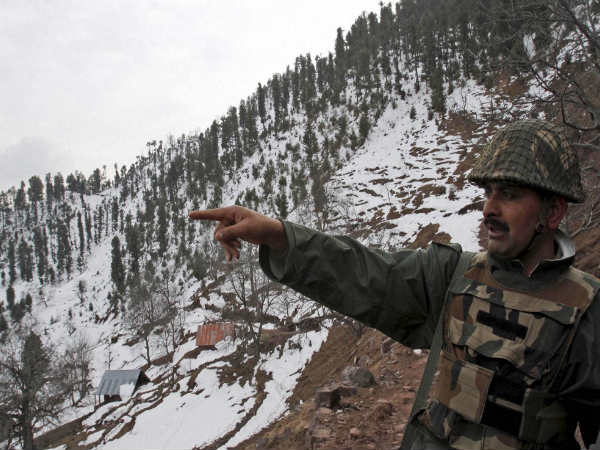 फ्लैग मीटिंग में जाते हुए अधिकारियों के वाहन को रास्ता बताता भारतीय सेना का एक जवान।